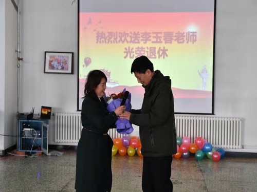 将致力于打造德艺双馨的教师队伍,培养品德高尚、全面发展的学生。院长韩顺杰为光荣退休的李玉春老师献花、颁奖并送上美好祝福,感谢他几十年来兢兢业业在一线教学岗位上的无私奉献。