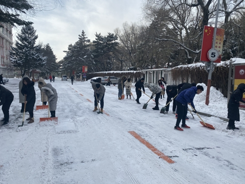 组织全体学生党员及第45期发展对象对分管区域的积雪进行了及时清扫。