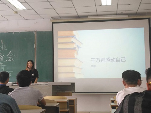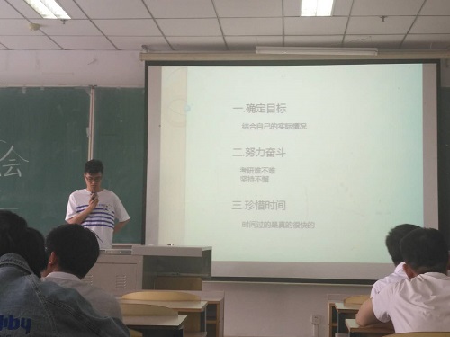 会议伊始,刘师帅副院长介绍了我校近两年来考研招收情况,并分析了本校考研的优势,使同学们对考研有了一定的了解。随后,多位来自大四的优秀学生分享了他们考研或就业的经验。