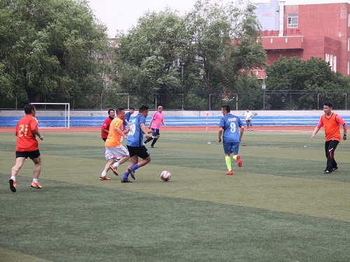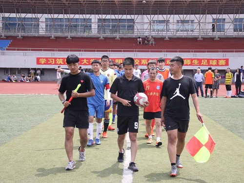 授衣仪式结束后,下半场比赛开始,随着球赛进入白热化阶段,师生们也开始发挥全力,拦截踢球活力四溢,心脏的波动同球体跳动一起共振,他们用激情与汗水传达着对运动、对生活、对职业的热爱。紧张激烈的比赛接近了尾声,教师代表队和学生代表队打出了2:2的平局成绩,至此师生交流足球赛圆满落幕。