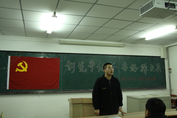 党委的部署,积极推进创先争优活动的开展。12月1日下午16:00,我院学生党支部在主楼1403教室召开主题为“当好排头兵”理论学习交流活动,本次活动由学生党支部书记赵爽老师主持。
