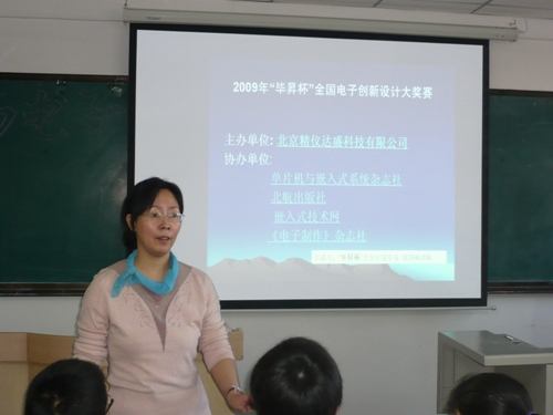 会议室举办了电子创新设计大赛知识讲座,特邀“毕昇杯”大学计划专员张国栋讲师主讲,我院部分研究生和本科生聆听了讲座。讲座由我院生物医学工程系主任林晓梅教授主持。 张老师首先介绍了“毕昇杯”全国电子创新设计大赛的发展历史,接着张老师分别从“毕昇杯”创新设计竞赛平台方案选型、如何选择和搭建竞赛平台、各种总线的介绍、图像处理平台、通用扩展板和自由扩展区如何使用及往届设计竞赛活动参赛平台展示进行了详细的讲解。张老师整个讲座图文并茂,生动且易于同学接受。讲座结束后,张老师为现场同学解答了关于电子创新设计大赛的相关事宜,并用电子元件为同学们解答了在设计中遇到的实际问题。 通过本次讲座,激发了同学们对电子创新设计大赛的兴趣,增进了同学们相互沟通的距离,也为推动我校学生参与电子创新设计大赛起到积极作用。