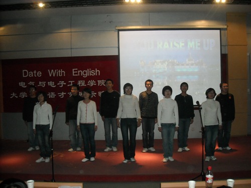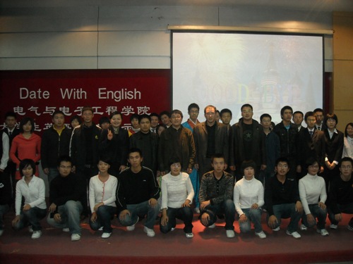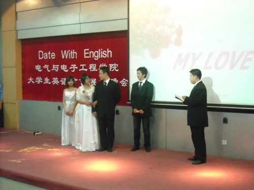 2008年11月4日,我院“Date with English ”大学生英语才艺展示晚会在综合三拉开序幕。学生工作处学生管理科科长黄向东,校团委社会实践部部长马辉,学生工作处邵捷,我院党总支副书记周文军及学生办公室的各位老师莅临晚会。 晚会在电气乐队演唱《卡农》和《Break out》中拉开了帷幕,同学们多才多艺,节目丰富多彩,既有庄严而又振奋人心的著名演说《I have a dream》,又有幽默风趣的话剧《孔雀东南飞》,同时外国语filmjav