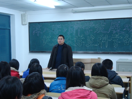 学生支部全体党员和部分红旗社成员参加这次讲座。 这次讲座是我院开展深入学习实践科学发展观活动集中学习、调查研究阶段的一项重要举措。在一个小时的讲座中,董占武主任深入浅出,旁征博引,系统介绍了科学发展观产生的时代背景,阐明了科学发展观的深刻内涵,论述了把握科学发展观的十个基本点,提出了实践科学发展观,促进大学生科学的全面发展途径和要求。与会同志深受启发,表示要按照学校深入贯彻落实科学发展观的要求,努力把学习的体会和成果转化为成长成材的实际工作中,以便毕业后为祖国做贡献。 |
