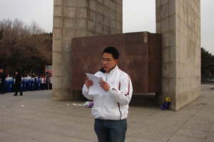 学生会主席李想同学主持。李想同学首先向同学们介绍了长春解放纪念碑的由来,并带领大家向纪念碑默哀三分钟。默哀过后,学生支部的全体党员在filmjav