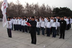 学生党支部书记郑洪斌老师讲话,他指出,今天我们举行的“祭奠革命先烈,重温入党誓词”活动意义深远、作用重大,它必将激励我们每个党员牢记宗旨、勤奋学习,永葆共产党员的先进性。必将激励每位同学刻苦努力、奋发图强,为祖国的繁荣昌盛贡献自己的力量。郑老师最后希望全体同学继承先烈遗志、牢记党的教导,立足现在、开创未来,创造更加辉煌灿烂的明天! 撰稿人:李林琳 审核人:周文军 图片提供:任佰鹏 |