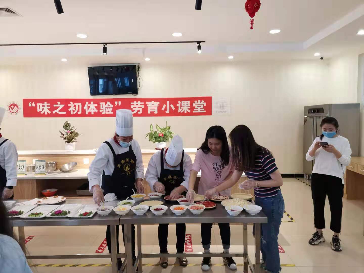 参观结束后同学们参加了食堂举办的“味之初体验”美食小课堂系列活动,亲身体验了一次“大厨”的工作,同食堂厨师们一起烹饪了“满城尽带黄金甲”“美味披萨”等佳肴。同学们拿出手机记录下整个教学过程,也记录下现场的欢声笑语。同学们在佳肴中体味中华美食文化的魅力,在互动中体会师生间的温情。