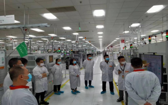 一行参观了企业电子无尘生产车间,分别由我校校友张磊、金晶、刘国斌针对生产线现场进行了详细的讲解。