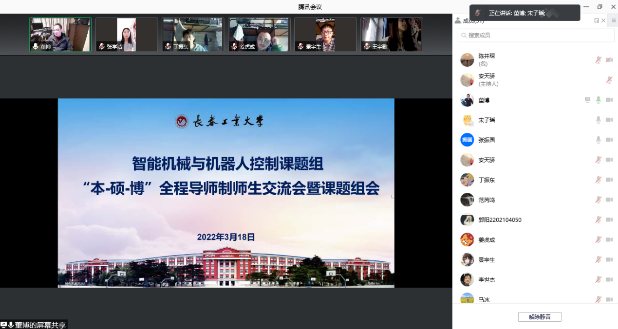 疫情虽然阻隔我们见面,但是阻止不了对学科知识探索的脚步!3月18日下午,智能机械与机器人控制课题组全程导师制的所有老师与同学们在线上召开了一次特殊的组会,此次组会既是学术交流会,也是疫情期间导师和研究生、本科生的工作生活交流会。这也是继2021年课题组在落实filmjav
