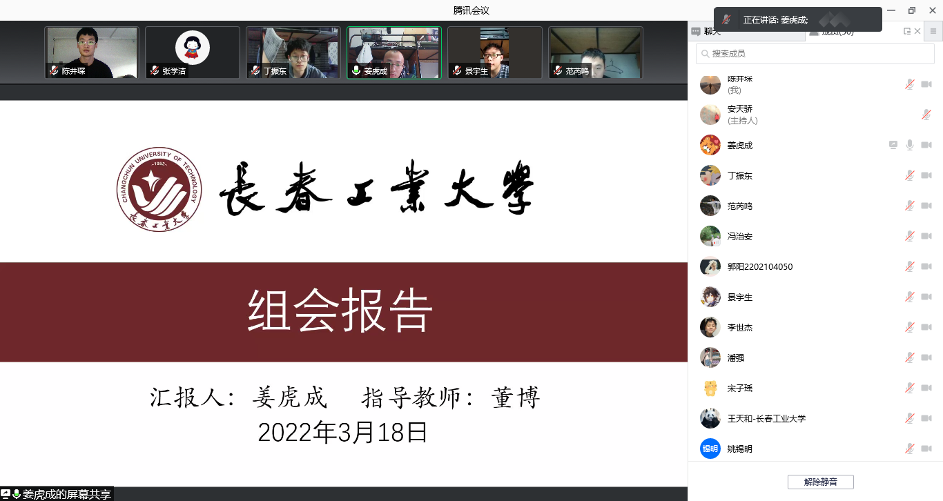 会议由智能机械与机器人课题组李元春教授主持,课题组中的董博、张振国、刘姝阳、周帆、任晓琳、马冰老师和在读研究生以及19级、20级本科生共51人参加了此次组会。