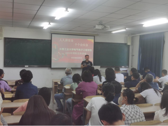 讲座中,周教官借用多媒体播放了全国各地引发的各种火灾情形及给国家、社会、个人带来的严重后果,结合自身多年的消防工作实践,介绍了容易引发火情的原因及造成的危害,详细讲解了发生火灾后的自防、自救及逃生技能。同时,为我院教职工细致解答了日常工作和生活中所遇到的消防问题如何及时正确的应对。
