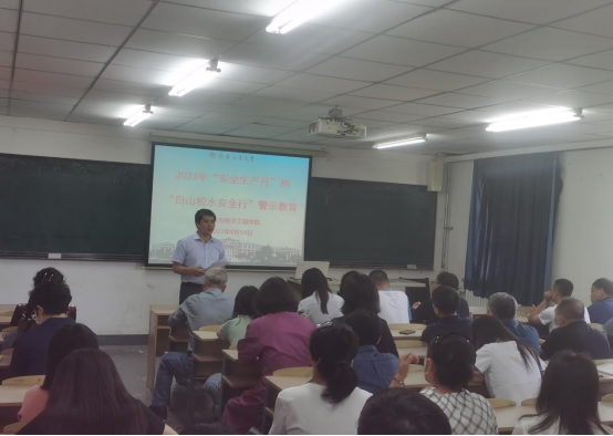 党委书记按照上级指示精神落实《关于开展2023年“安全生产月”和 “白山松水安全行”活动的通知》有关要求进行传达,警示全院教职员工要确保安全第一,预防为主,持续树牢安全红线意识,推动安全生产责任落实,切实提高风险隐患排查整改质量,切实提升发现问题和解决问题的能力和水平,进一步提升全院师生安全意识和避险逃生能力。