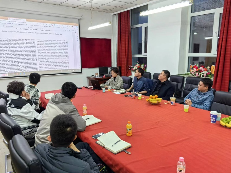 在活动中潘强讲述了期刊论文在小修过程中每一条意见的修改和回复内容,活动现场对重点问题进行了研讨。李赞讲述了拟投稿期刊论文的主体内容,活动现场对多智能体控制和多无人系统控制等内容进行了深入交流。卢曾鹏讲述了博士论文的主体内容,对毕业答辩内容进行了分享,活动现场对容错控制中机器人各类实际故障的原理与控制模型中故障的表示关系做了深入交流,并对论文内容、讲述内容和答辩问题进行了讨论。