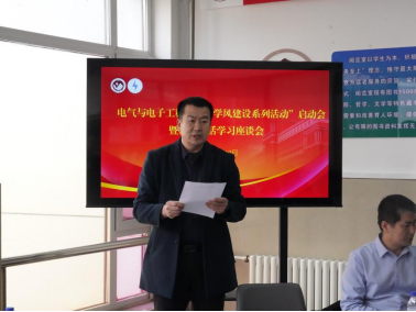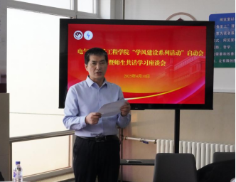 副校长金光勇发表讲话,代表学校对我院“学风建设系列活动”的正式启动表示热烈祝贺,并预祝各项活动取得圆满成功。金光勇对全体师生提出三点期望:一是全体师生要把加强学风建设作为自身成长的必然追求,不断强化学风建设,提升学习能力和学习水平。二是全体教师要在学风建设中服务学生成长成才,以高尚的人格魅力赢得学生敬仰,以模范的言行举止为学生树立榜样。三是全体同学要在学风建设中坚定奋斗信念,充分发挥主人翁意识,在各项活动开展过程中,主动参与、主动融入、主动作为。