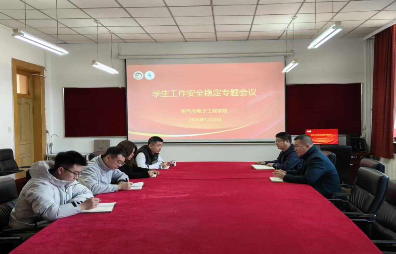全体辅导员老师在电气楼1303会议室召 开了学生工作安全稳定专题会议。谷阔书记主持会议并发表重要讲话。