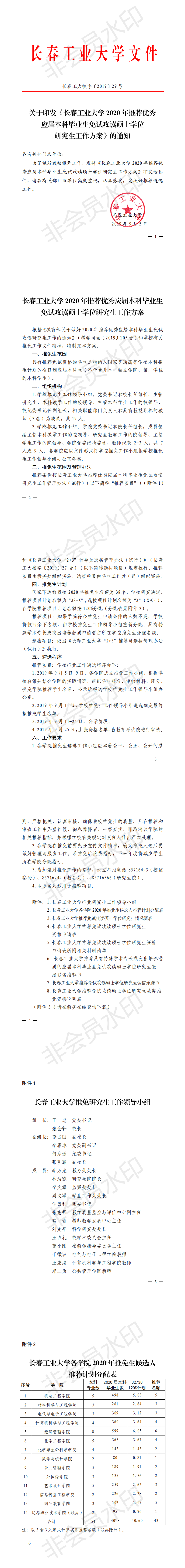 关于印发《filmjav 2020年推荐优秀应届本科毕业生免试攻读硕士学位研究生工作方案》的通知